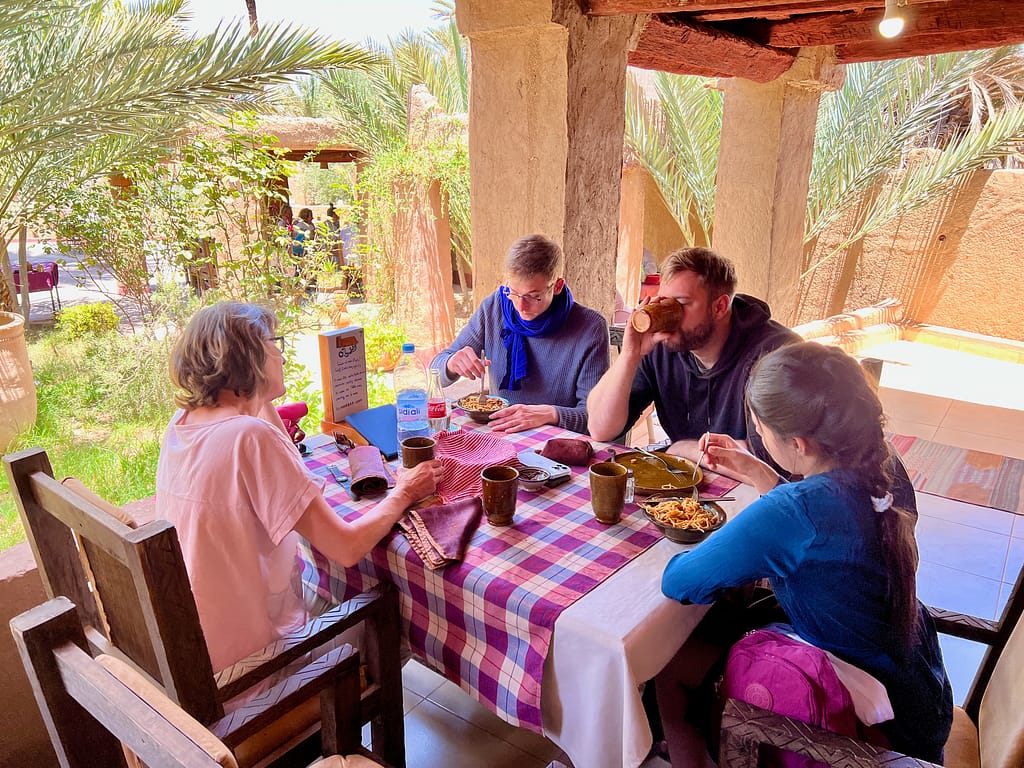 Zum Mittagessen haben wir in einer uralten Oase gerastet. Die Oase Ferkla El Oulia in Marokko hat eine lange Geschichte und große Bedeutung für die lokale Bevölkerung sowie für die Region insgesamt.