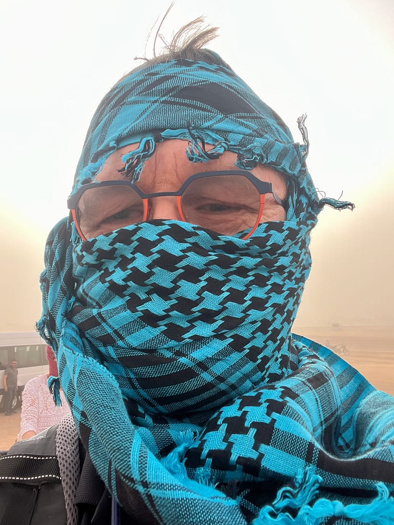 … mit ein paar netten Kopfbedeckung wg. des Sandsturms